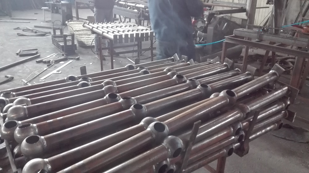 3)、穿入欄杆管件至第一根立柱半個球位,其餘部分懸空。